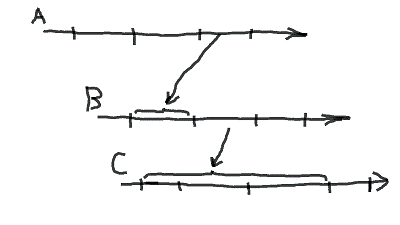 В эпоху распространнённых для описания жизненных циклов водопадных «колбасок» был простой способ показывать даже не разветвлённые графы создателей, а простые цепочки отношений создания для разового жизненного цикла: сам жизненный цикл на них рисовался изображающими время полного жизненного цикла стрелками с зарубками, отделяющими стадии/фазы жизненного цикла, а отрезки времени эксплуатации каждой системы с работами по созданию других систем показывались стрелкой-скобочкой на линии времени жизненного цикла очередной системы в графе создателей (при этом создатели сами не отображались, а их именами подписывали «условные жизненные циклы», обычно линейные. Например, в иллюстрации создатели — A, B, C):