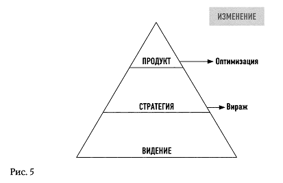 В книге описано, что крутятся два цикла: совершенствования продукта (новые и новые фичи, эволюция продукта) и резкой смены продукта (вираж/pivot, организация при этом претерпевает существенные изменения, научается делать новый продукт — ибо старый продукт оказался бесперспективным).