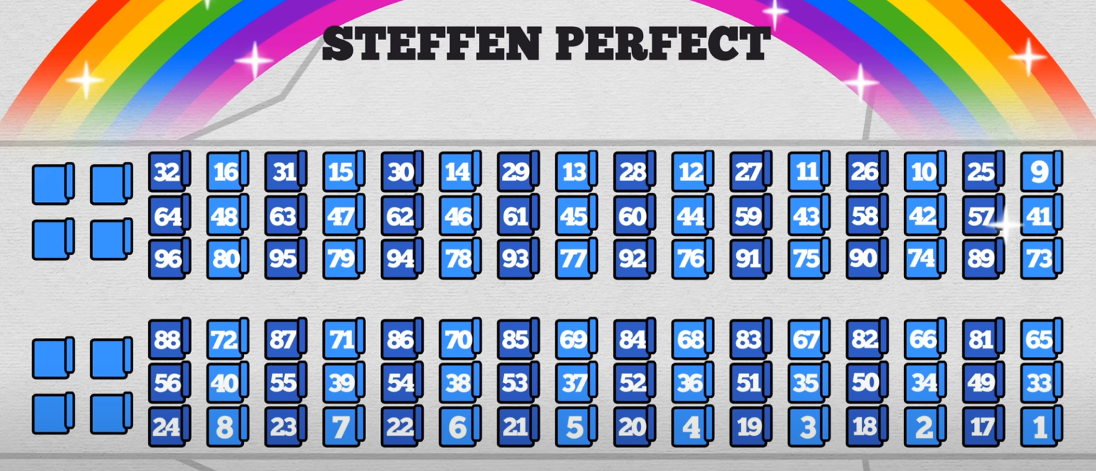 А теперь попробуем заземлиться и представить, как рассадить реальных пассажиров реального самолета, используя Steffen Perfect. Все ли пассажиры поймут инструкции по рассадке? Готовы ли они вообще выполнять эти инструкции? Если готовы, как они будут выполнять эти инструкции и сколько будет неразберихи? Что делать с пассажирами с детьми: если они сидят рядом, то родители и дети должны будут заходить в салон по отдельности? А что делать с опаздывающими пассажирами, которые влетят в салон в последний момент? Не окажется ли, что применение этого метода в реальности не только не даст выигрыша по времени, а окажется еще и медленнее, чем остальные используемые методы (о них тоже рассказано в видео с симуляцией)? Более того, как мы будем обсуждать позднее, в теме о поиске важного, оптимизировать рассадку пассажиров вообще не нужно – есть другая работа, которая выполняется медленнее этой и выступает реальным ограничением. Штеффен решал проблему, решать которую вовсе не стоило![3]