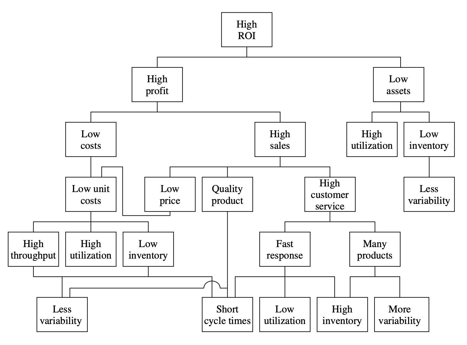 Для начала опишем ситуацию моделирования. Как вы знаете, организации существуют, чтобы реализовать какую-то цель. Коммерческие организации существуют, чтобы приносить владельцам и инвесторам хороший возврат на инвестиции (Return on Investment, ROI) или возврат на активы (Return on Assets, ROA) в долгосрочном периоде.