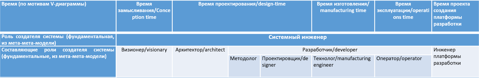 Напомним табличку с ролями в разделении труда (системного) инженера: