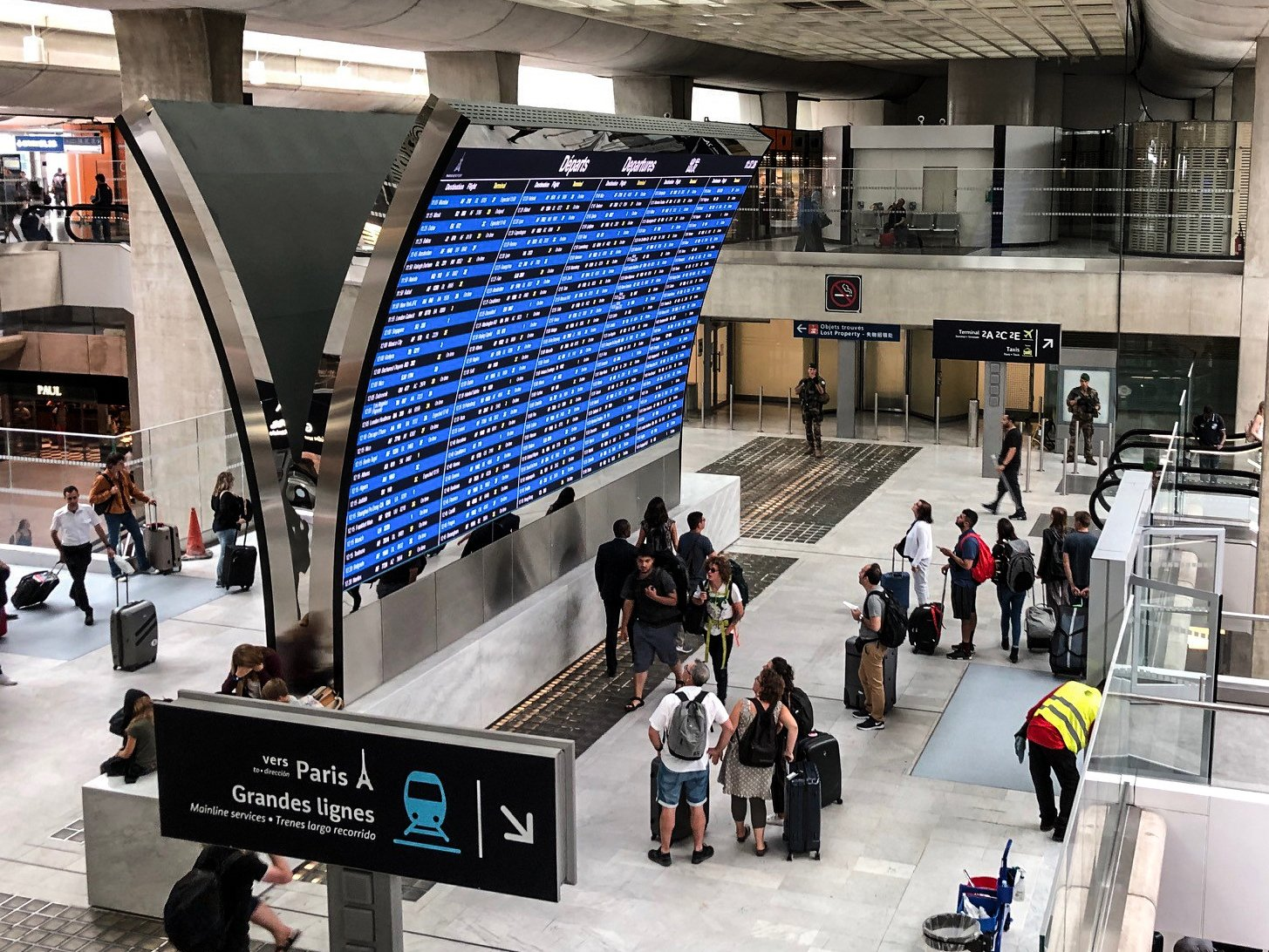 Представьте аэропорт, в котором идёт транзит десятка тысяч пассажиров в сутки, а также сотен самолётов. Каким-то чудесным образом каждый пассажир сам находит маршрут в этом лабиринте к стойке сдачи багажа, а затем к нужному гейту, за которым его ожидает самолёт. Нет никакой системы, которая выдавала бы пассажиру команды, куда ему идти (хотя такие команды мы иногда слышим: «пассажир Имярек, пройдите на посадку в гейт такой-то», но это исключение, управление всеми посадками устроено по-другому, нет выдачи индивидуальных команд). Чтобы люди как-то «самоорганизовались» (помним про «подстройку, как в джазовом ансамбле»), важные части модели аэропорта документированы и вывешены на всеобщее обозрение. Все гейты имеют свои номера, в аэропорту стоят указатели, куда надо идти, чтобы найти эти гейты. Но какие именно гейты работают на посадку на какие рейсы, что происходит с рейсом — это каждый пассажир узнаёт сам на табло/dashboard, где отображается текущая ситуация с учётом всех изменений. Сейчас это табло выносится на экран смартфона каждому пассажиру, текущая ситуация понятна со всеми изменениями не только после прибытия в аэропорт, но ещё по пути в аэропорт, или даже раньше. После получения информации на табло пассажир предпринимает все нужные действия сам: торопится, или не торопится, ищет администраторов аэропорта в случае затруднений, находит путь к гейту, ориентируясь на указания, в случае задержек рейса меняет решение о поездке или терпеливо ждёт, но главное — он не требует внимания менеджеров, не требует внимания других пассажиров.