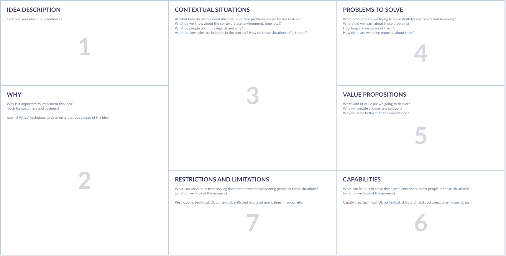 Но обратите внимание, что смысл тут немного меняется: речь идёт не столько о том, чтобы о чём-то подумать, сколько о чеклисте для разделов статьи. Тем не менее, это подчёркивает онтологичность (указание важных объектов внимания) разделов статьи и превращает статью в альфу, которую дальше двигают по её состояниям в проекте написания статьи: для ответа на вопрос о содержании каждого раздела статьи надо планировать какие-то работы. Это в какой-то мере относится и к бизнес-моделированию: если смотреть на business model canvas как на чеклист какой-то альфы, то нужно выполнить работы, переводящие ситуацию «бизнес-модели нет» в «бизнес-модель есть» (то есть на вопросы холста есть ответы).