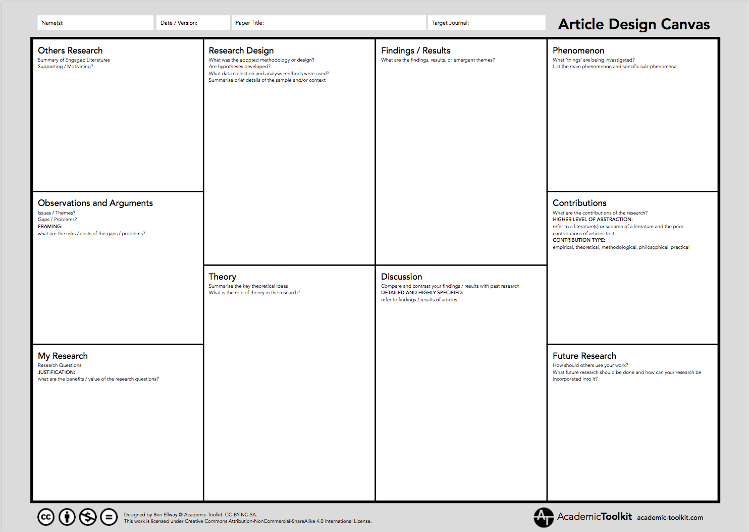 Идея «холстового бизнес-моделирования» оказалась настолько модной, что в 2017 появился холст и для написания научной статьи[9]: