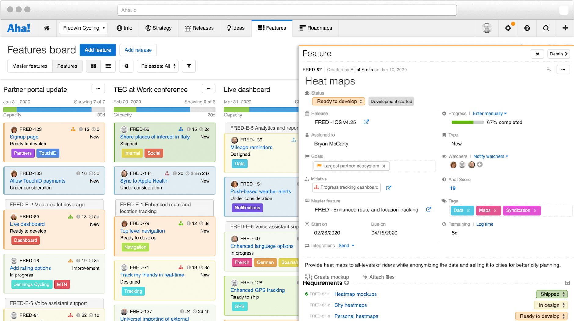 Это приводит к ещё одному вопросу про управление работами для стратегирования, планирования работ по реализации стратегии, и затем отслеживания выполнения стратегии. Есть целый класс софта для выполнения таких работ, он называется roadmap****software, примером тут служит Aha![10]:
