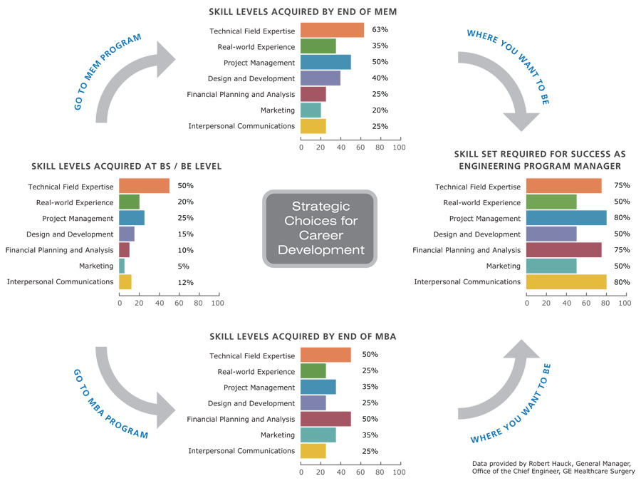 В ходе попытки привлечь на менеджерские программы выпускников естественнонаучного бакалавриата (физиков, математиков, химиков) появились и программы инженерного менеджмента/engineering management[7] как особое учебное предложение для менеджеров, которые будут иметь дело с инженерами. Основное там отличие — это большое число учебных часов на «инженерную» (безлюдную) часть менеджмента, то есть на операционное управление как главным образом управление проектами, а в остальном это самый обычный менеджмент «как везде». Для того, чтобы хоть как-то представить инженерный менеджмент как отдельную менеджерскую дисциплину, был организован консорциум университетов[8], предлагающий курсы на степень MEM, master of engineering management и организована профессиональная ассоциация[9], спонсорами которой являются исключительно университеты, а не инженерные организации, заинтересованные в развитии инженерного менеджмента. Этот консорциум требует от поступающих пререквизитом бакалаврской степени по STEM (то есть естественным наукам или инженерии), указывая, что на MBA могут поступать историки, юристы и т.д., которые затем хуже понимают, чем занимаются инженеры в высокотехнологических организациях. Вот диаграмма, которая даёт представление о таком понимании инженерного менеджмента как «общего менеджмента, только для инженерных команд — менеджеры и инженеры будут лучше понимать друг друга, имея общее STEM образование»: